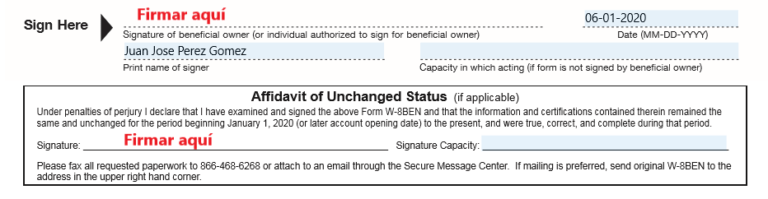 In Fig. 2 I show you how the RUC webpage looks like. There, you only have to type your identity document number (DNI in Peru) and the system will grant you the associated RUC number. In case you don't have one, you have to request it in person and tell them that you need one because you are planning to invest in the stock market. They will give you the number and all what is left is to write it down on W-8 BEN form. Finally, you will complete the form by signing it as it appears in Fig. 3: