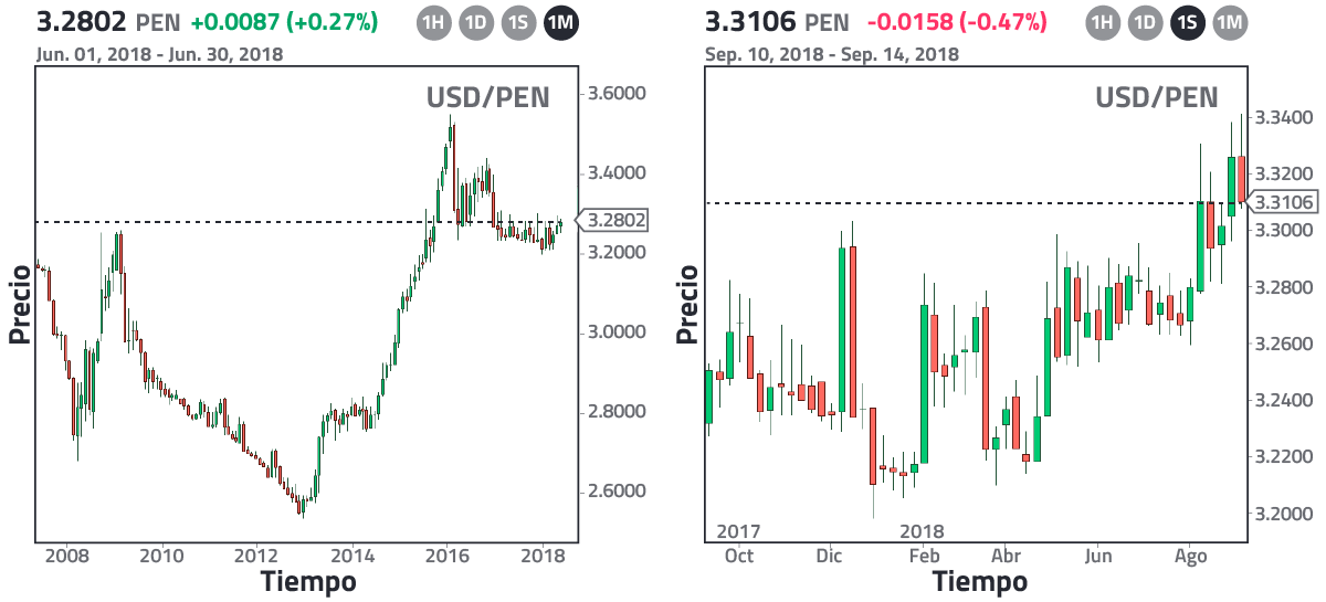 Ahora pasemos a estudiar las noticias del mundo. ¿Por qué el dólar creció a mitad del año 2018? Esto se debió a las políticas adoptadas por el entonces presidente de EEUU, Donald Trump. En su intento por mejorar la economía de su país hizo cambios importantes en lo que respecta a las importaciones y exportaciones de productos y materias primas. Y si bien generó una alerta roja mundial al entrar en una guerra comercial con China, en el corto plazo la ganó y por ende su moneda se apreció respecto a las demás. Conociendo esta información, hubieses optado por no vender los dólares a 3.30 soles, hubieses esperado un poco más, de esa forma las ganancias serían superiores. Esa es la ventaja de hacer uso de las noticias del mundo.