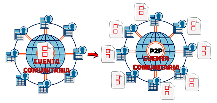 Fig. 6: Representación de la cuenta comunitaria. Forma elemental (izquierda). Forma real (derecha).
