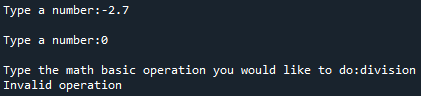 Como podemos ver, si el usuario proporciona el número 0 como denominador, Python generará "Invalid operation".