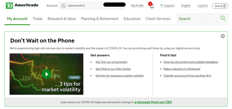 Fig. 2: Cuenta personal en TD Ameritrade.