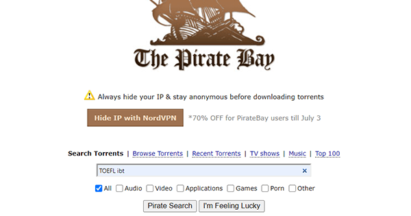 2. Accede a Piratebay